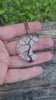 This hauntingly beautiful natural quartz crescent moon is encompassed with twists of dark copper, culminating into a magnificent tree. The pendant measures 1-1/2" tall and 1-1/4" wide. Your necklace will come on a genuine black leather cord or a matching color chain in the length of your choice. (Faux leather cording is also available upon request)