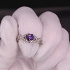 • White Gold CZ Amethyst Engagement Ring, Heart Shaped Ring, Bridal Jewelry
