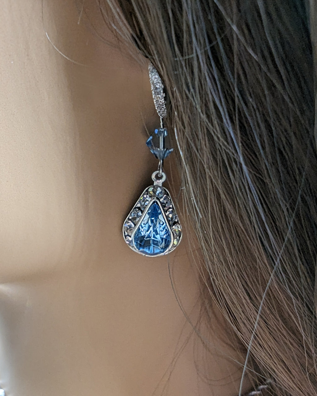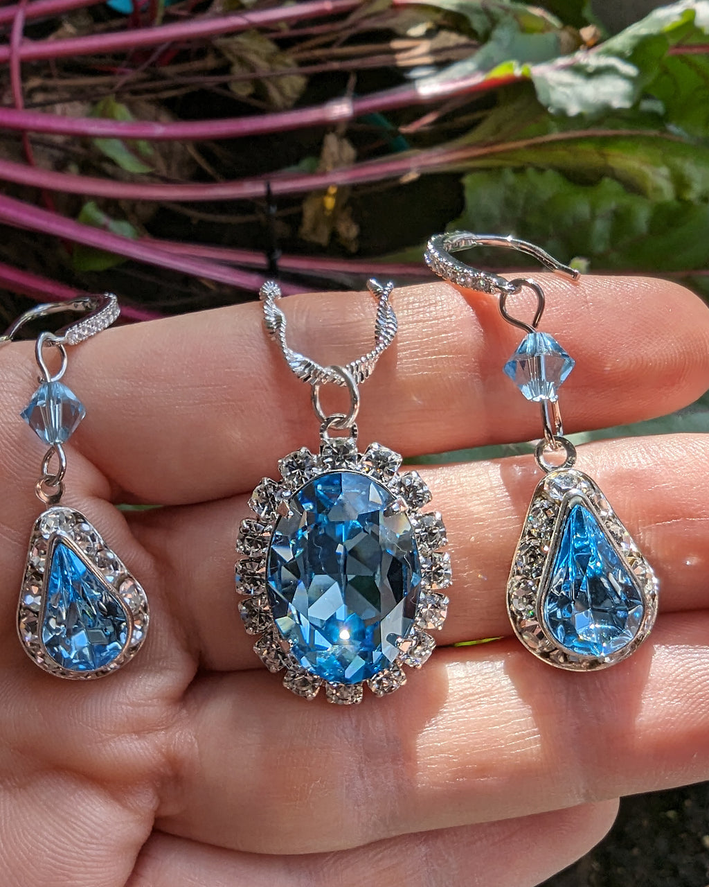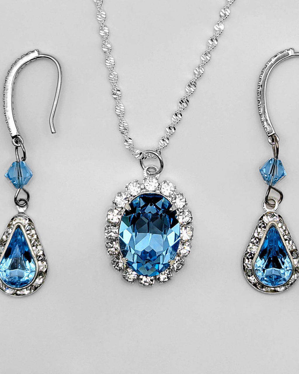 • Aquamarine Swarovski Crystal Necklace and Earring Set, Bridal Jewelry Set, Wedding Jewelry