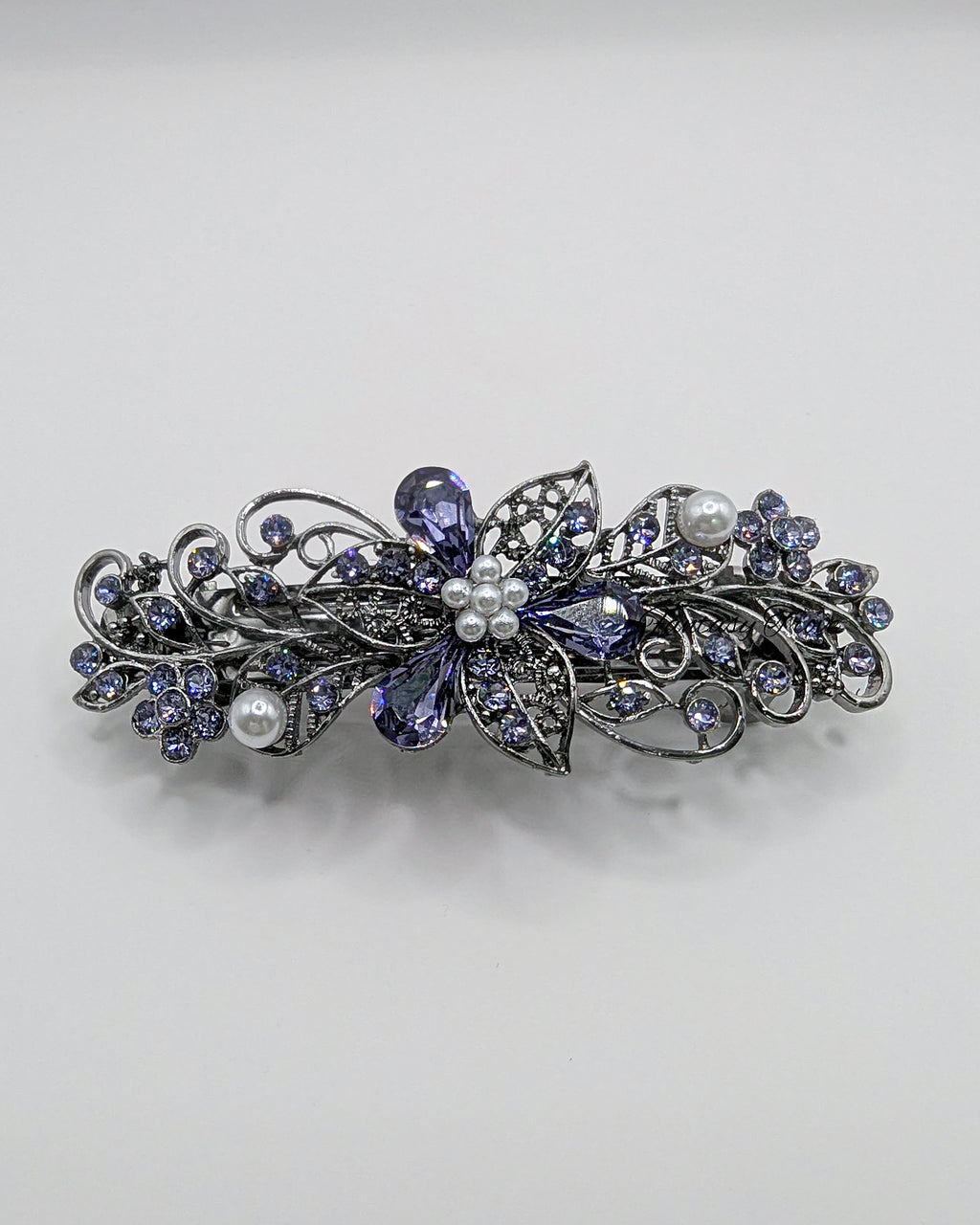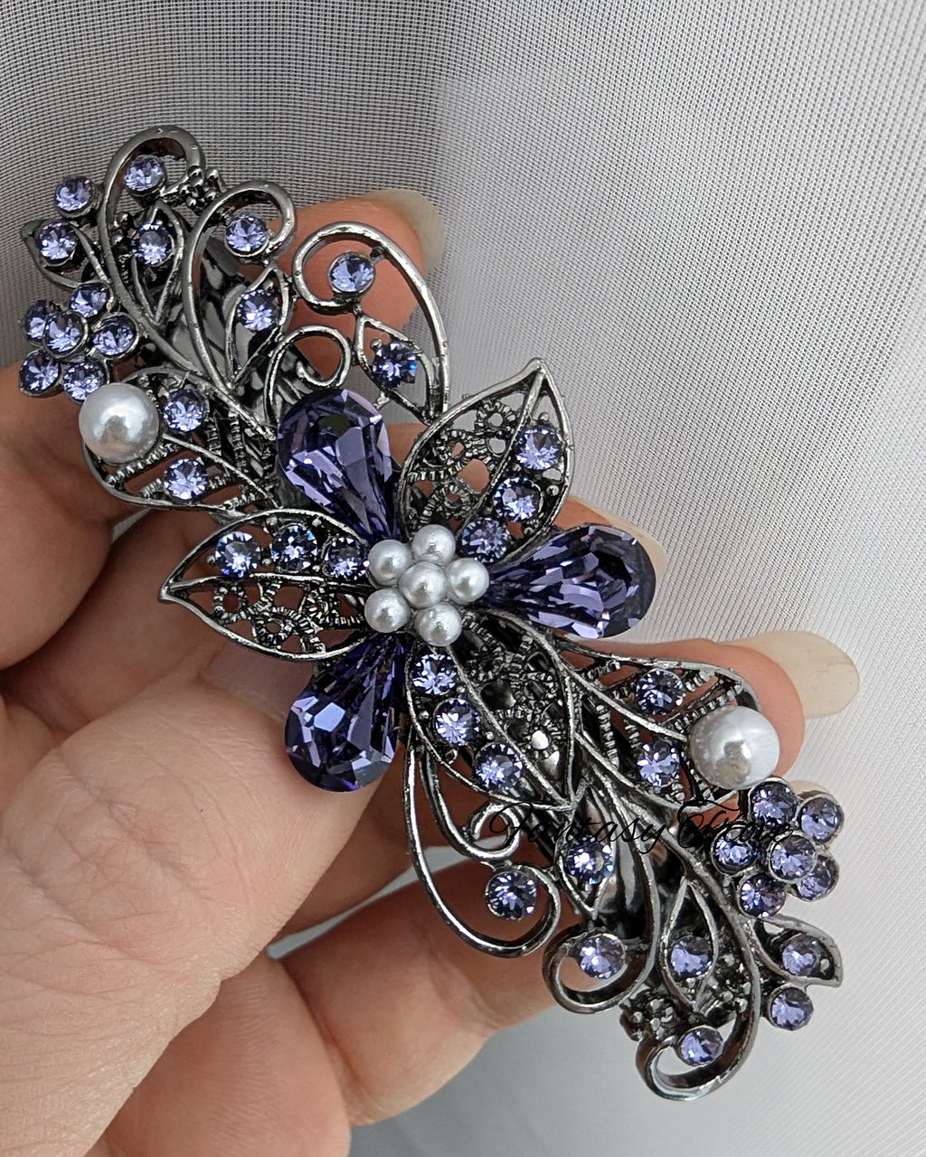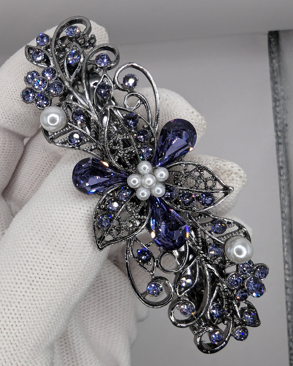 • High Quality Swarovski Tanzanite Floral Crystal Hair Clips, Fancy Hair Barrettes, Bridal Hair Accessories, Hair Barrettes for Thick Hair
