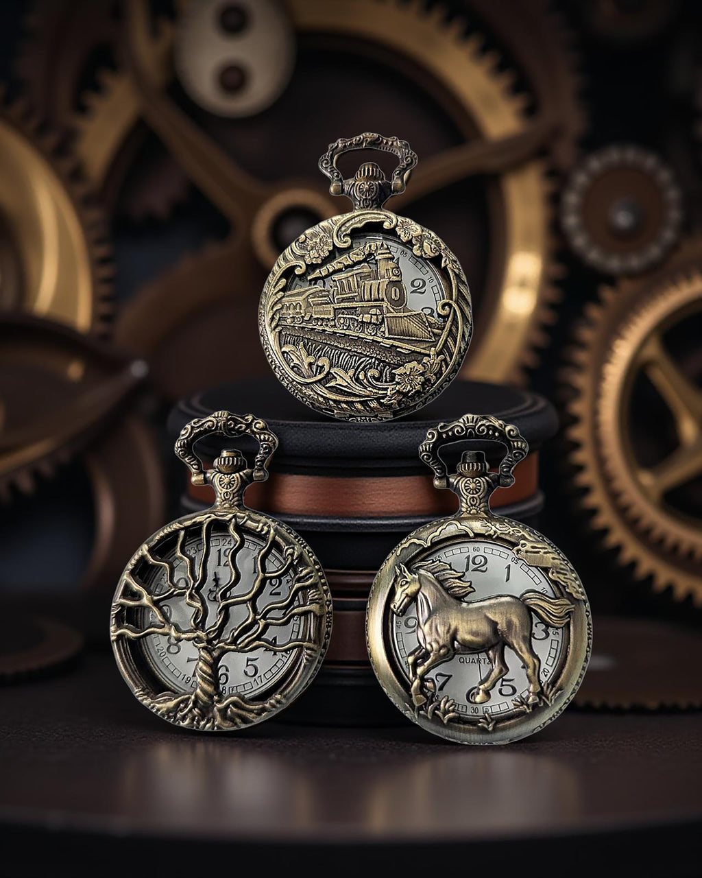 Each pocket watch is fully functional with a reliable quartz movement and doubles as a unique statement necklace. Whether worn daily, given as a thoughtful gift, or collected as a keepsake, these pocket watches bring both style and meaning.