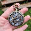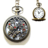 The pocket watch measures approximately 2" x 2" and will come on a bronze chain in the length of your choice. If you're not sure what chain length you need then let me know and I can make it adjustable within 2".