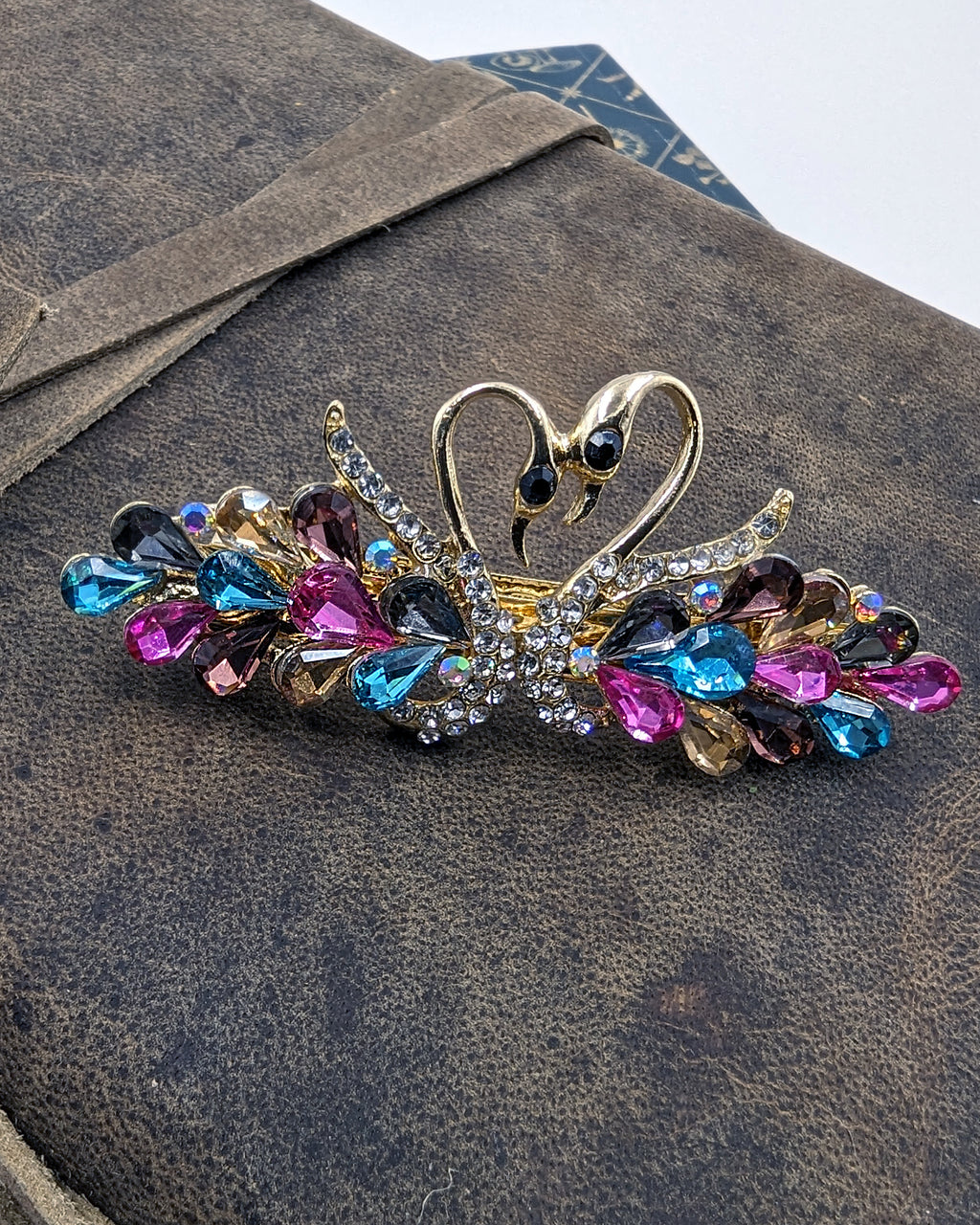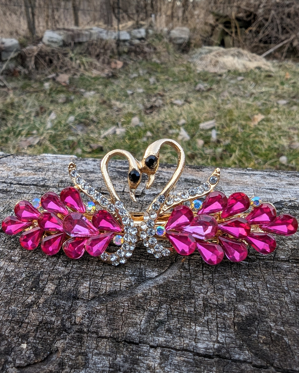 Elevate your hairstyle with these charming of crystal swan hair clips, available in a variety of captivating colors. These elegant accessories blend graceful design with sparkling embellishments, making them perfect for both everyday wear and special occasions.