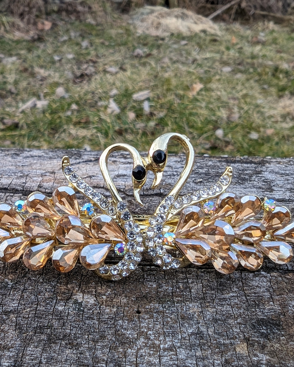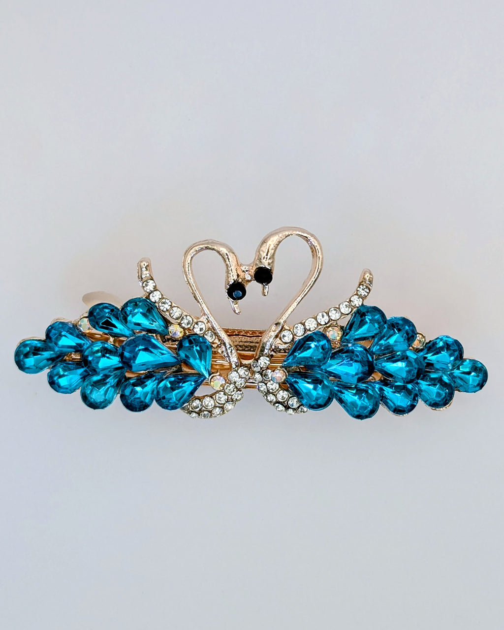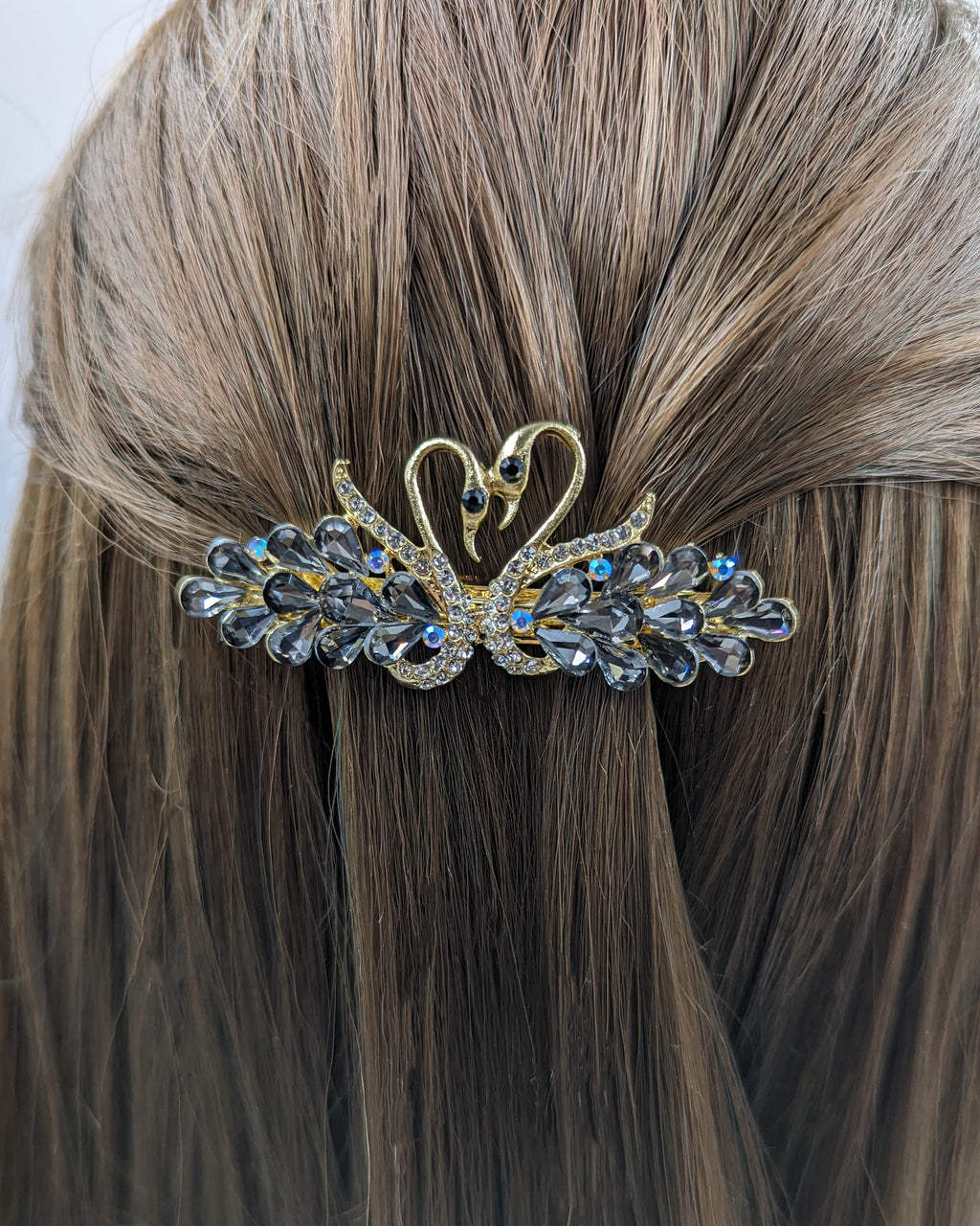 • Crystal Swan Hair Clips, Swan Rhinestone Hair Barrette