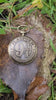 The pocket watch measures approximately 2" x 2" and will come on a bronze chain in the length of your choice. If you're not sure what chain length you need then let me know and I can make it adjustable within 2".