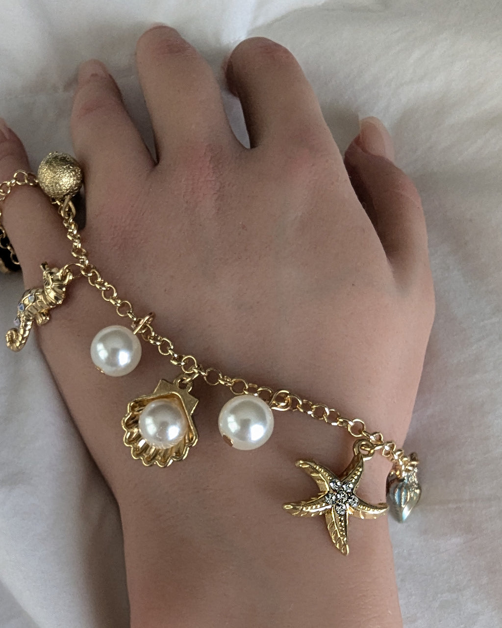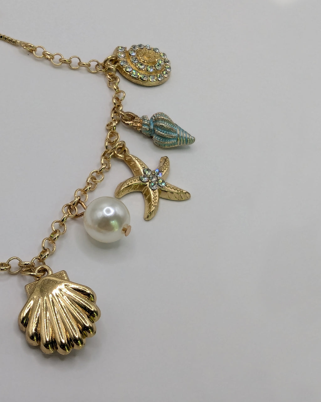 This beautiful gold toned charm bracelet was the lost treasure of a mermaid princess which was found recently at the bottom of the sea.  It's told to possess magical properties and brings luck and prosperity to the wearer.